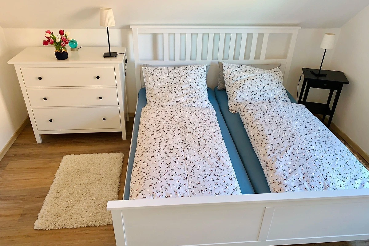 * Schlafzimmer mit geräumigem Kleiderschrank, Bettwäsche