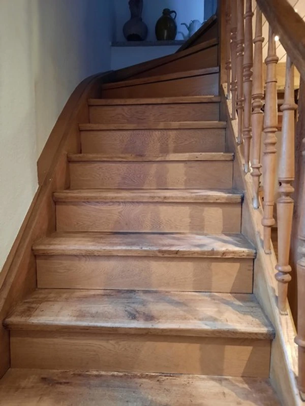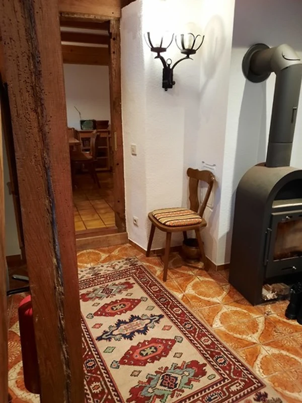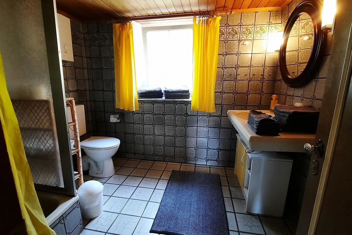 Wohn-und Schlafzimmer sind mit Laminatböden ausgestattet. Die Einrichtung besteht aus einem ausgeglichenem Mix von modernen und rustikalen Möbeln, (passend zum Stil des gemütlichen Eifelhauses), so dass eine urige, heimelige Atmosphäre entsteht.