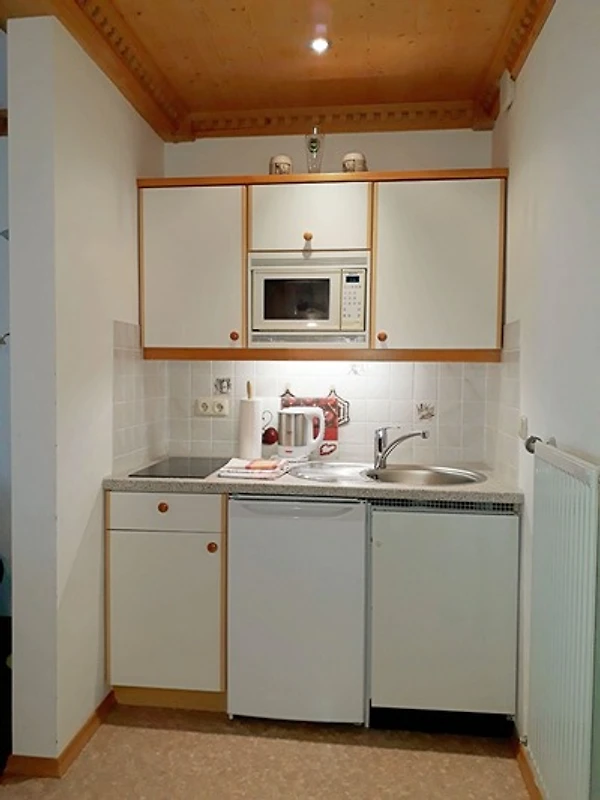 Gut ausgestatteter Kochnische, Essecke und gemütliche Sitzgruppe zum Relaxen.