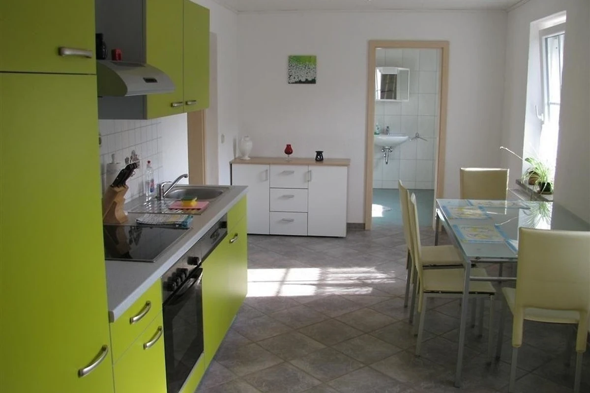 Die Ferienwohnung "Schönhaide" ist im 2. Obergeschoss gelegen und bietet mit einer Grösse von ca. 55 qm Platz für 3 Personen. Die grosse Küche mit Esstisch und kompletter Küchenzeile/Einbauküche ist mit einem Herd, einem Backofen und einer Geschirrspülmaschiene ausgestattet. Die Wohnung verfügt ausserdem über ein Badezimmer mit Dusche und WC, einem Schlafzimmer mit einem Doppelbett sowie einem grossen Wohnbereich. Dieser ist mit einer gemütlichen Couchgarnitur eingerichtet, welche auch als Schlafsofa fungiert. Zur Unterhaltung steht Ihnen ein TV zur Verfügung.