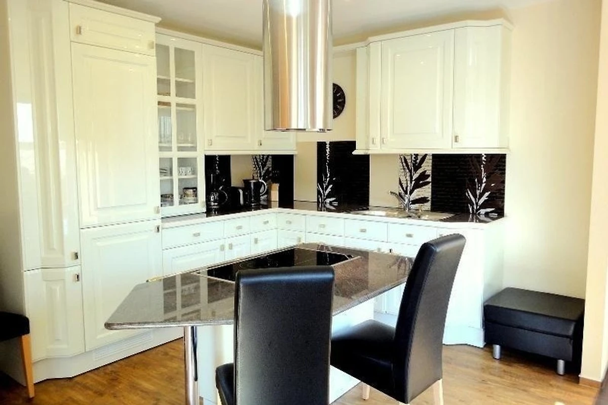 Küche: komplett eingerichtet, mit Kühlschrank, Geschirrspüler, Backofen, Cerankochfeld, Mikrowelle, Kaffeemaschine, Toaster, Wasserkocher