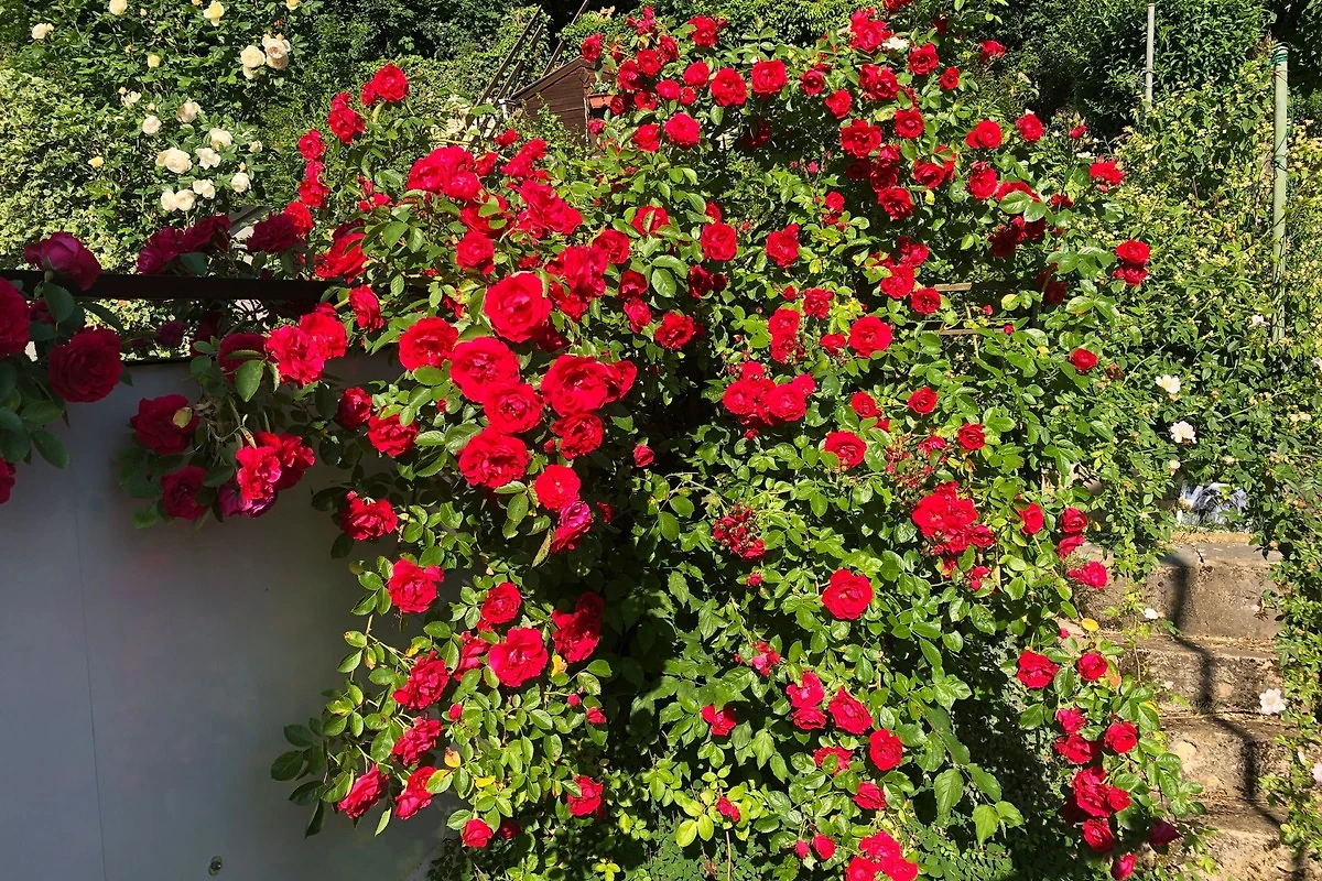 Vor und hinter dem Haus bieten 2 Terrassen und 1 Balkon ungestörte Erholung, eigener Parkplatz, Garten.