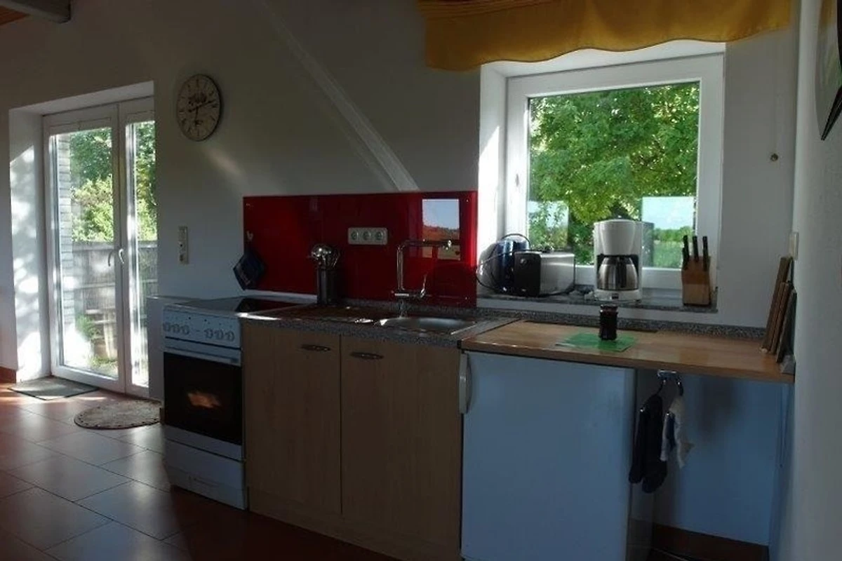 Das Ferienhaus ist barrierefrei und geräumig, so dass es auch von Menschen mit einer Gehbehinderung, auch mit Rollstuhl, gut zu benutzen ist. Alle Räume liegen ebenerdig. Ein Schlafzimmer mit Doppelbett (180 cm x 200 cm), ein grosses Wohnzimmer mit Küchenzeile (Ceranfeldherd und Backofen) und ein kleines Zimmer mit einem Einzelbett (90 cm x 200cm) haben Ausblick zur Schlei. Das Wohnzimmer ist mit vier bodengängigen Fenstern und einer Terrassentür ausgestattet, so dass viel Licht hereinkommt. Ebenfalls im Wohnzimmer finden Sie noch eine Polstersitzgarnitur, sowie eine schöne Essecke, Bücher, Orts- und Umgebungsprospekte sowie Spiele, TV, Radio und einen CD-Spieler. Das Bad verfügt über eine barrierefreie Dusche.