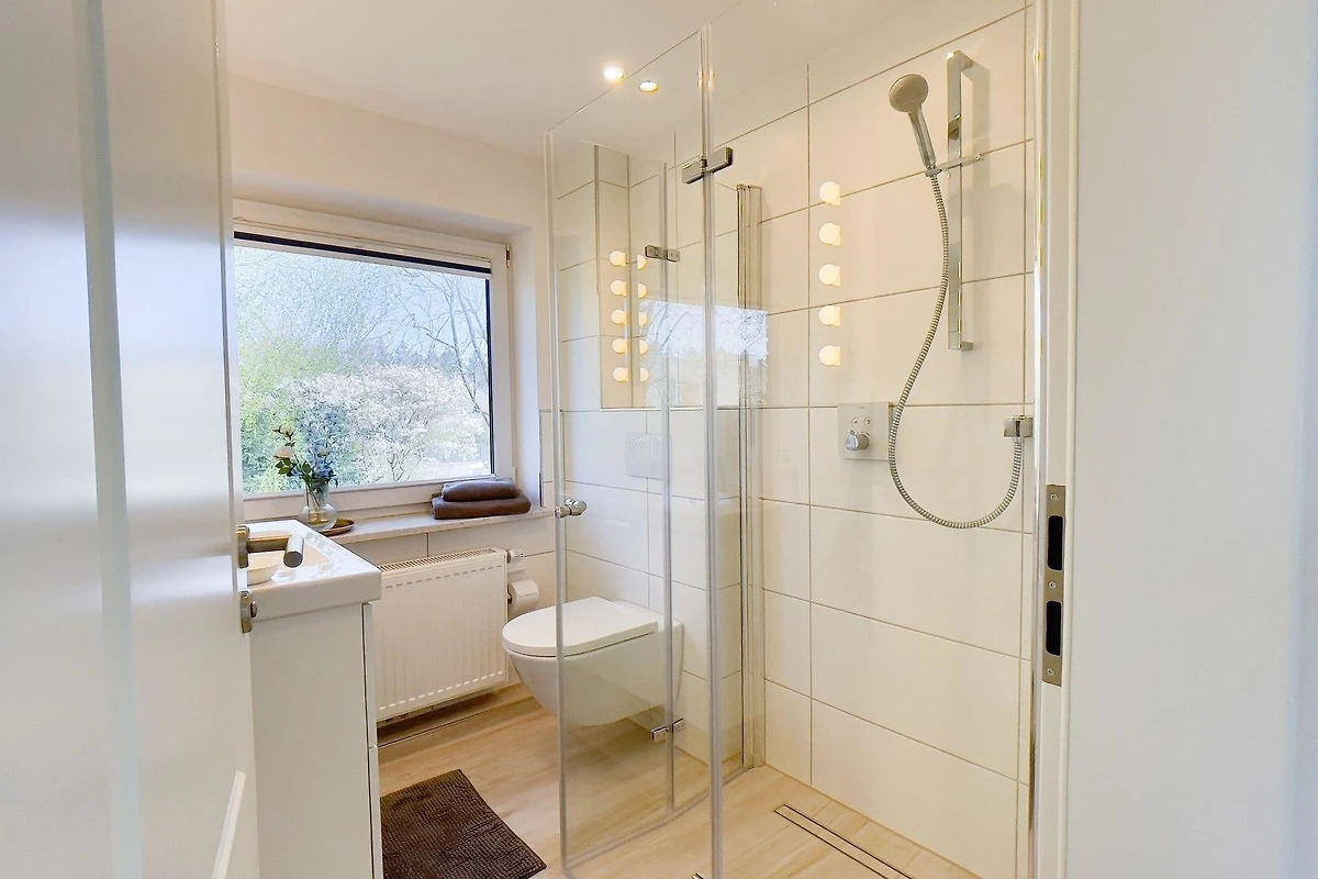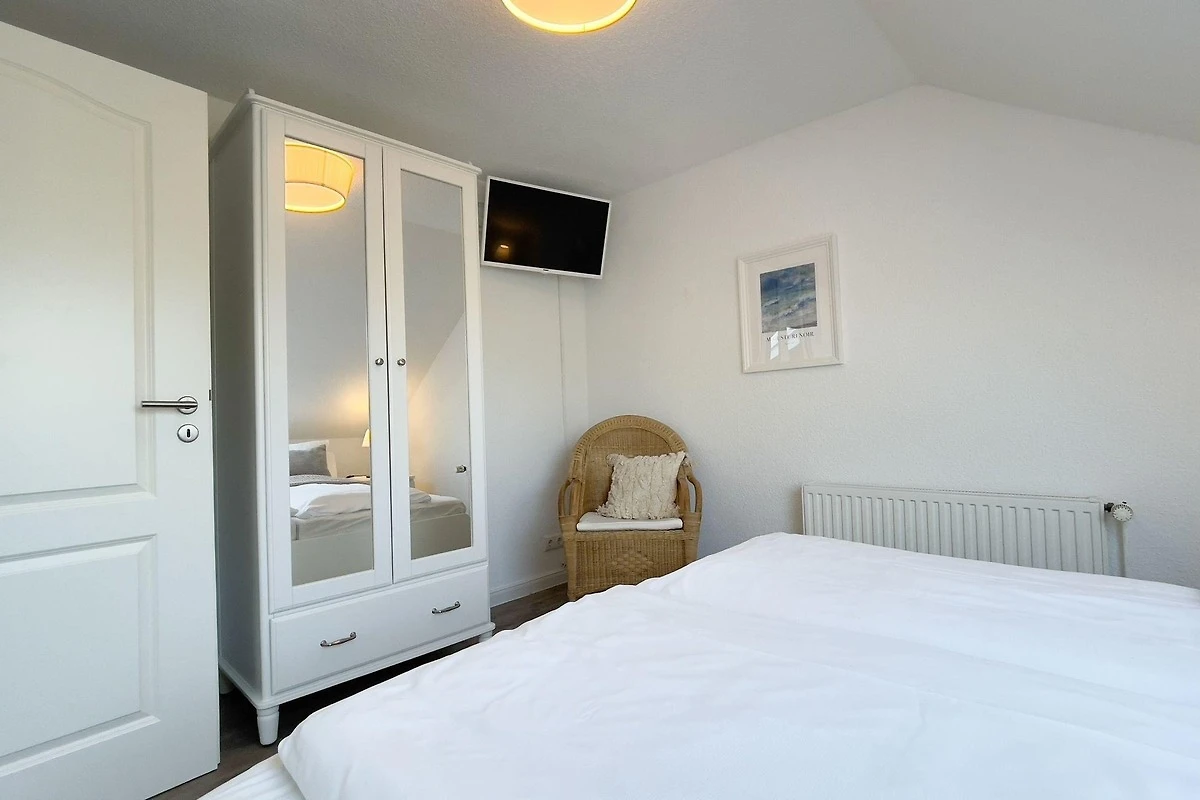Die Ausstattungsmerkmale beinhalten zusätzlich einen Wäschetrockner und eine Waschmaschine, die sich im Nachbarhaus in der Garage befinden und gemeinschaftlich genutzt werden. Die Ferienwohnung ist ideal für Familien und Gruppen und lädt zu einem entspannten Aufenthalt an der Nordsee ein.