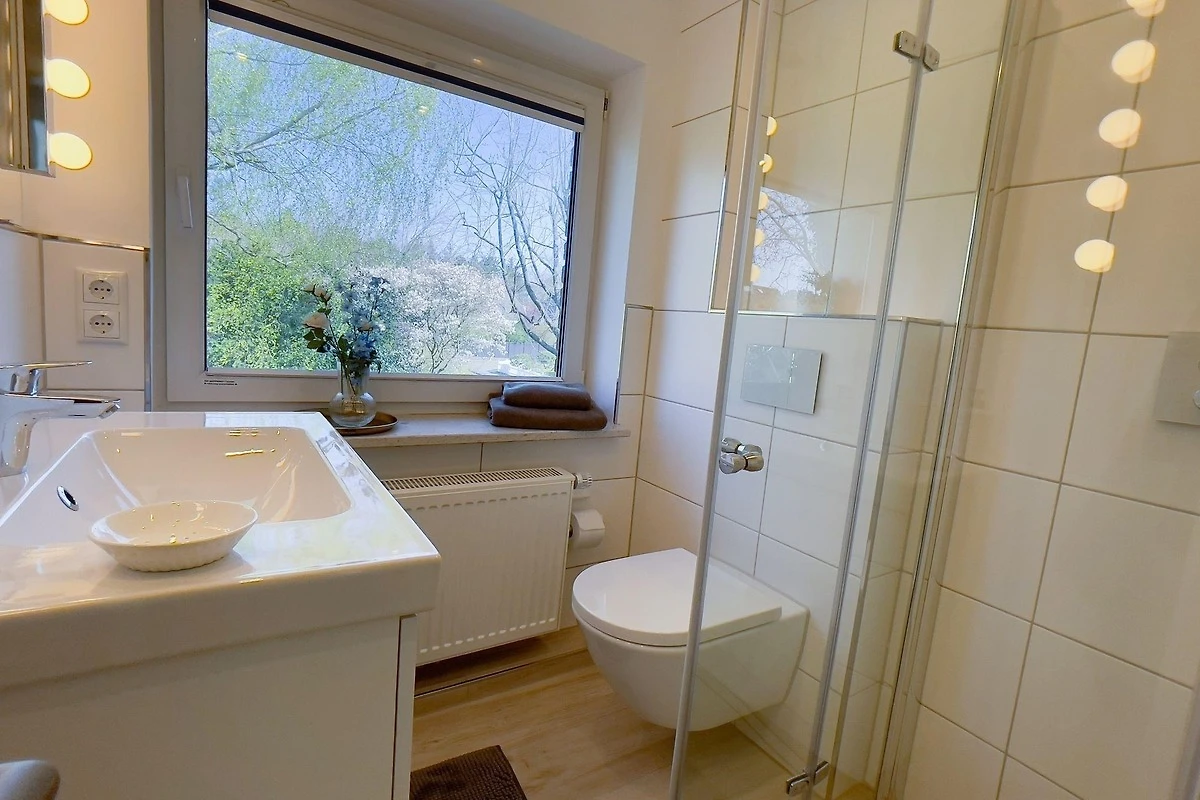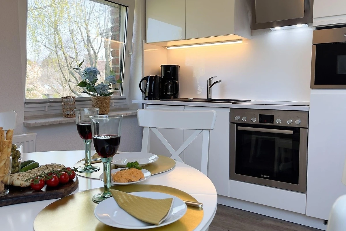 Die gemütliche Ferienwohnung Nr. 3 im Kapitänshaus in Cuxhaven bietet auf 55 m² Platz für bis zu 6 Personen. Sie verfügt über zwei komfortable Schlafzimmer mit Doppelbetten sowie ein Schlafsofa im hell gestalteten Wohnzimmer. Die offene Küche ist mit modernen Geräten ausgestattet, darunter Herd, Backofen, Kühlschrank, Spülmaschine und Mikrowelle, um kulinarische Köstlichkeiten zuzubereiten. Das helle Tageslichtbad bietet eine bodengleiche Dusche.