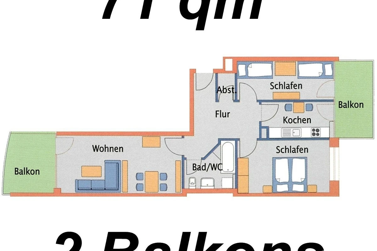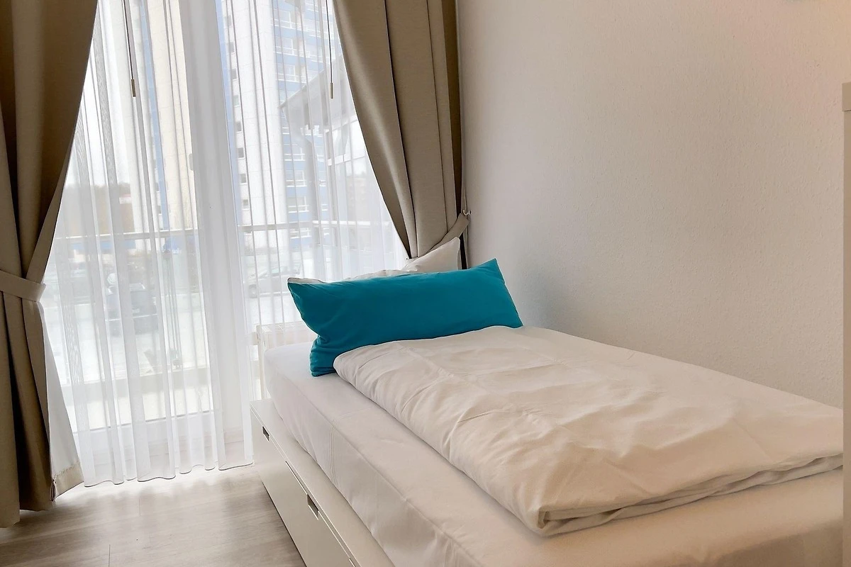 Die Ferienwohnung A2.1 im 2. Obergeschoss, erreichbar über einen Fahrstuhl, bietet Platz für bis zu 6 Personen. Sie verfügt über zwei separate Schlafzimmer, die für entspannte Nächte sorgen. Der Wohnraum ist einladend gestaltet und bietet ein gemütliches Schlafsofa für bis zu zwei zusätzliche Personen. Die vollausgestattete Küche ermöglicht die Zubereitung von Mahlzeiten, während im Bad eine Badewanne mit Duschmöglichkeit vorhanden ist. Eine Wasch-/Trocknerkombination sorgt für zusätzlichen Komfort. Für Familien sind ein Kinder-Reisebett und ein Kinder-Hochstuhl verfügbar. Die Wohnung ist ideal gelegen, nur etwa 200 Meter von der Promenade, Restaurants und dem Sandstrand entfernt. Fahrräder können im Fahrradkeller abgestellt werden. Hunde sind auf Anfrage erlaubt.