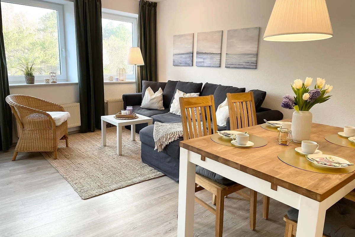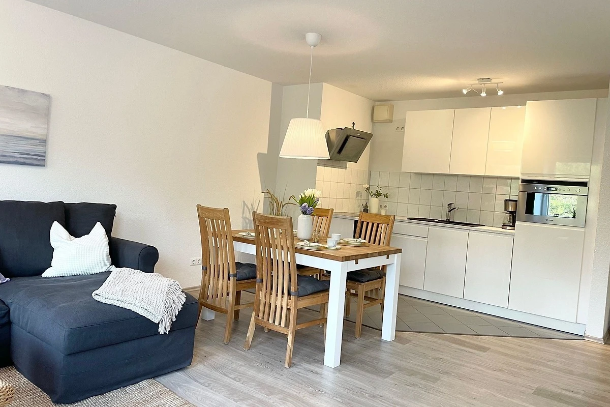 Die moderne Ferienwohnung in Cuxhaven-Sahlenburg bietet auf 59 m² Platz für bis zu 4 Personen. Sie verfügt über ein separates Schlafzimmer sowie einen Wohnraum mit einer top ausgestatteten Küche, die mit einem Geschirrspüler und einem Essbereich ausgestattet ist. Für zusätzliche Schlafmöglichkeiten steht ein ausklappbares Schlafsofa zur Verfügung. Die Wasch-/Trocknerkombination in der Wohnung ermöglicht eine bequeme Wäschepflege. Fahrräder können im gemeinschaftlich nutzbaren Fahrradkeller abgestellt werden. Ein Highlight ist der Balkon, der einen wunderbaren Blick auf den angrenzenden Wernerwald und die Nordsee bietet. Die Lage ist ideal, da der Sandstrand nur 200 Meter entfernt ist. Haustiere sind willkommen, sodass auch die vierbeinigen Begleiter problemlos mitreisen können.