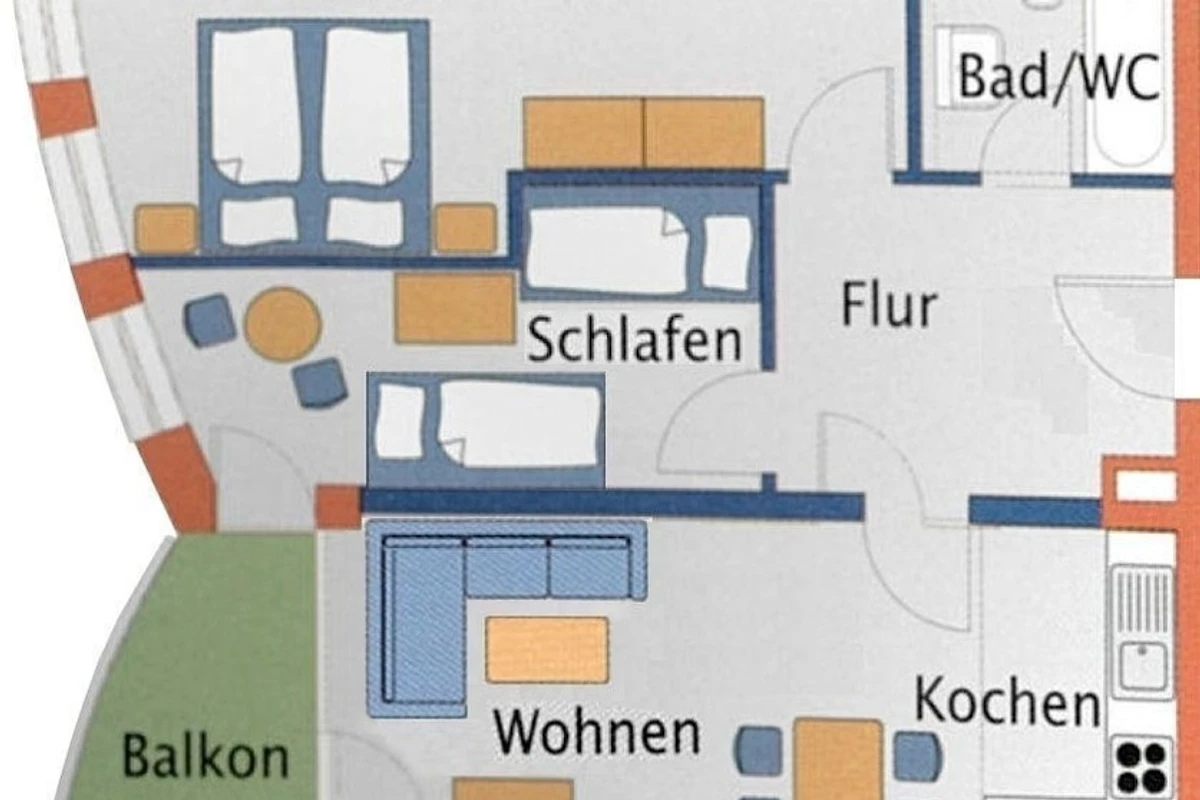 Die geräumige Ferienwohnung in Cuxhaven Sahlenburg bietet Platz für bis zu 7 Personen und ist ideal für Familien oder Gruppen. Sie verfügt über zwei separate Schlafzimmer: eines mit einem grossen Doppelbett, das andere mit einem Einzelbett und einem Etagenbett. Im gemütlichen Wohnbereich befindet sich ein ausklappbares Schlafsofa. Die voll ausgestattete Küchenzeile mit Geschirrspüler ermöglicht bequemes Kochen, während die Mahlzeiten am Esstisch oder auf dem Balkon mit schönem Seeblick genossen werden können. Das moderne Badezimmer ist mit einer Badewanne und Duschfunktion ausgestattet. Gemeinschaftliche Einrichtungen wie der Fahrradkeller sowie Münz-Waschmaschinen und Trockner stehen im Keller zur Verfügung. Haustiere sind auf Anfrage willkommen. Diese Ferienwohnung verspricht Komfort und eine ruhige Lage, nur ca. 200 Meter vom Strand entfernt.