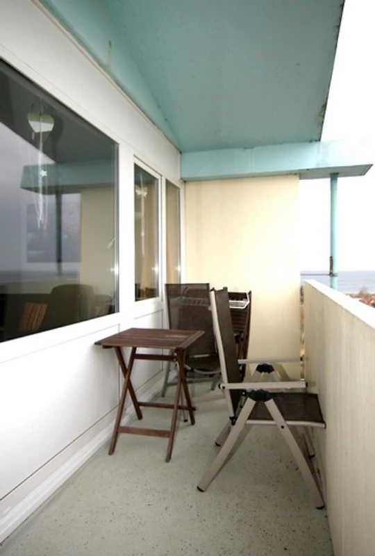 Auf der möblierten Loggia können Sie bei jedem Wetter und zu jeder Jahreszeit die Seele baumeln lassen. Vom Balkon haben Sie einen fantastischen Blick auf die Ostsee bis nach Dänemark. Kostenloser WLAN-Zugang ist vorhanden.