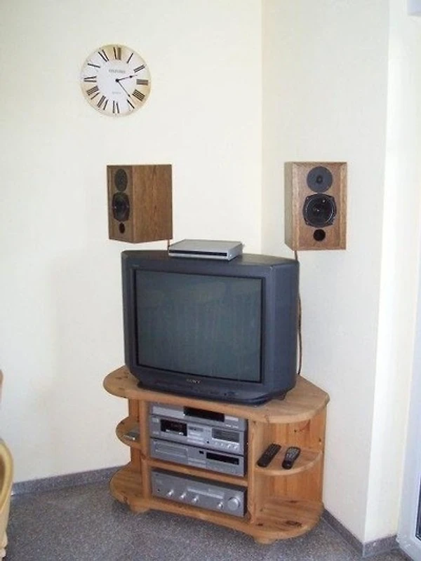 Im Erdgeschoss der Ferienwohnung befindet sich ausserdem der grosse Wohn- und Essbereich der Wohnung. Hier lässt sich perfekt ein entspannter Urlaubsabend verbringen. Ein Kaminofen sorgt auch in den kühleren Wintermonaten für eine gemütliche Atmosphäre. Ansonsten sorgen auch ein Fernseher und eine Stereoanlage für Ihre Unterhaltung. Am grossen Esstisch können Sie Ihre köstlich zubereiteten Mahlzeiten geniessen. Diese können Sie zuvor in der voll ausgestatteten Küche herrichten. Die integrierte amerikanische Einbauküche verfügt sogar über eine Mikrowelle sowie eine Spülmaschine.
