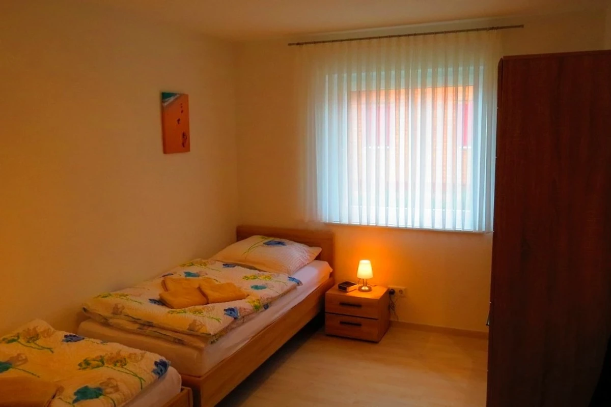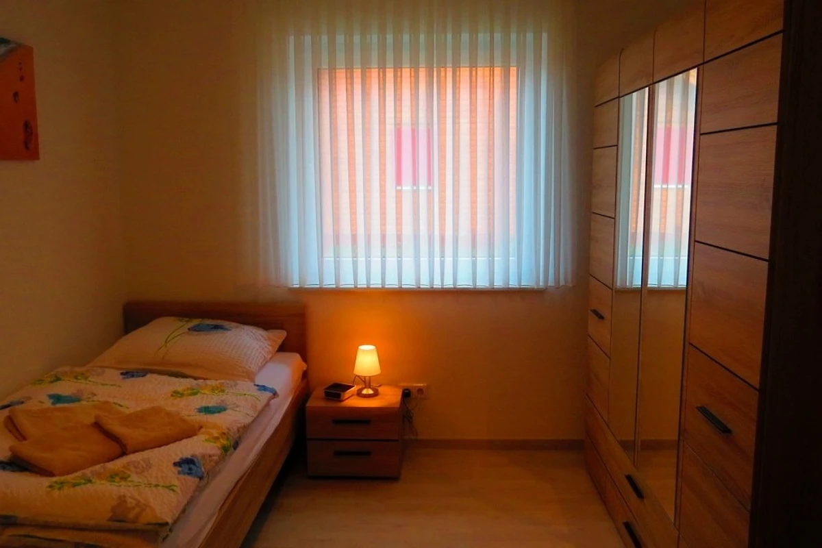 Das dritte Schlafzimmer hat zwei Einzelbetten (90 x 200 cm) inklusive einen Kleiderschrank. Für Kleinkinder steht ein Kinderreisebett zur Verfügung. In allen Schlafräumen sind Fernseher vorhanden.