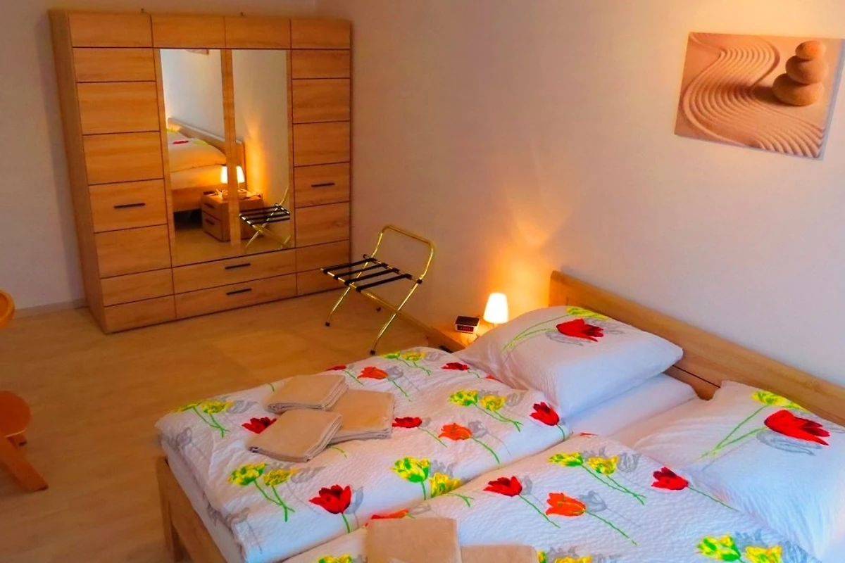 Drei Schlafzimmern befinden sich im Objekt. Zwei Schlafzimmer haben ein Doppelbett (180 x 200 cm), einen Kleiderschrank.