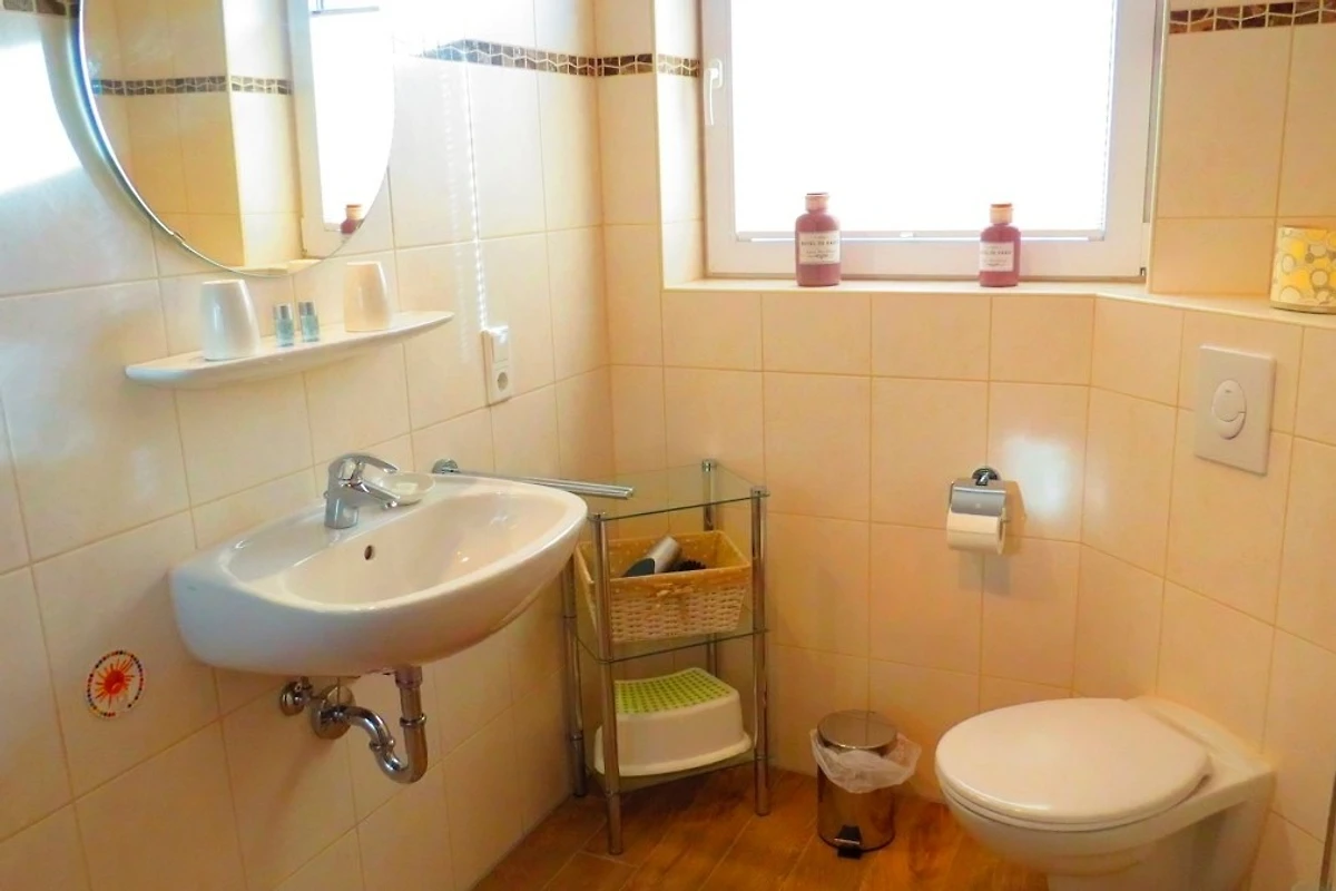 Im Haus befinden sich zwei Badezimmer mit Dusche.