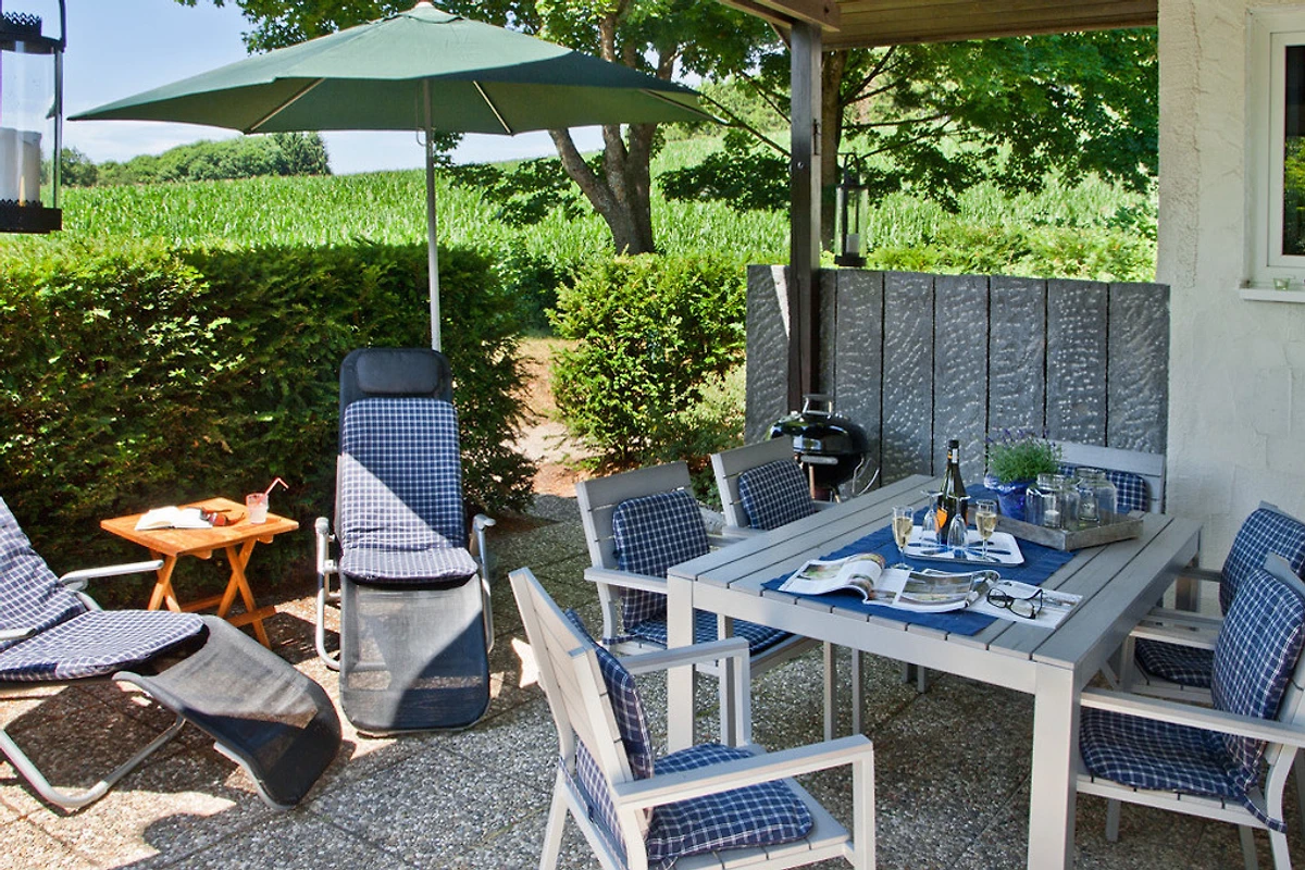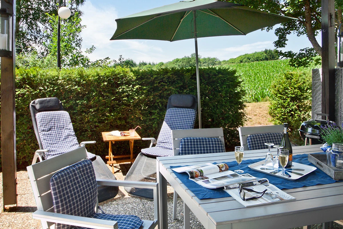 Zwei Terrassen in Süd- und Südwestlage ermöglichen Rückzug und relaxen im Freien. Unser Haus bietet Ihnen den gewünschten ländlichen Ferienluxus. Spielplatz im Grünen-Waldrand ist in der Nähe. Der See lädt zu einer kleinen Bootsfahrt ein.