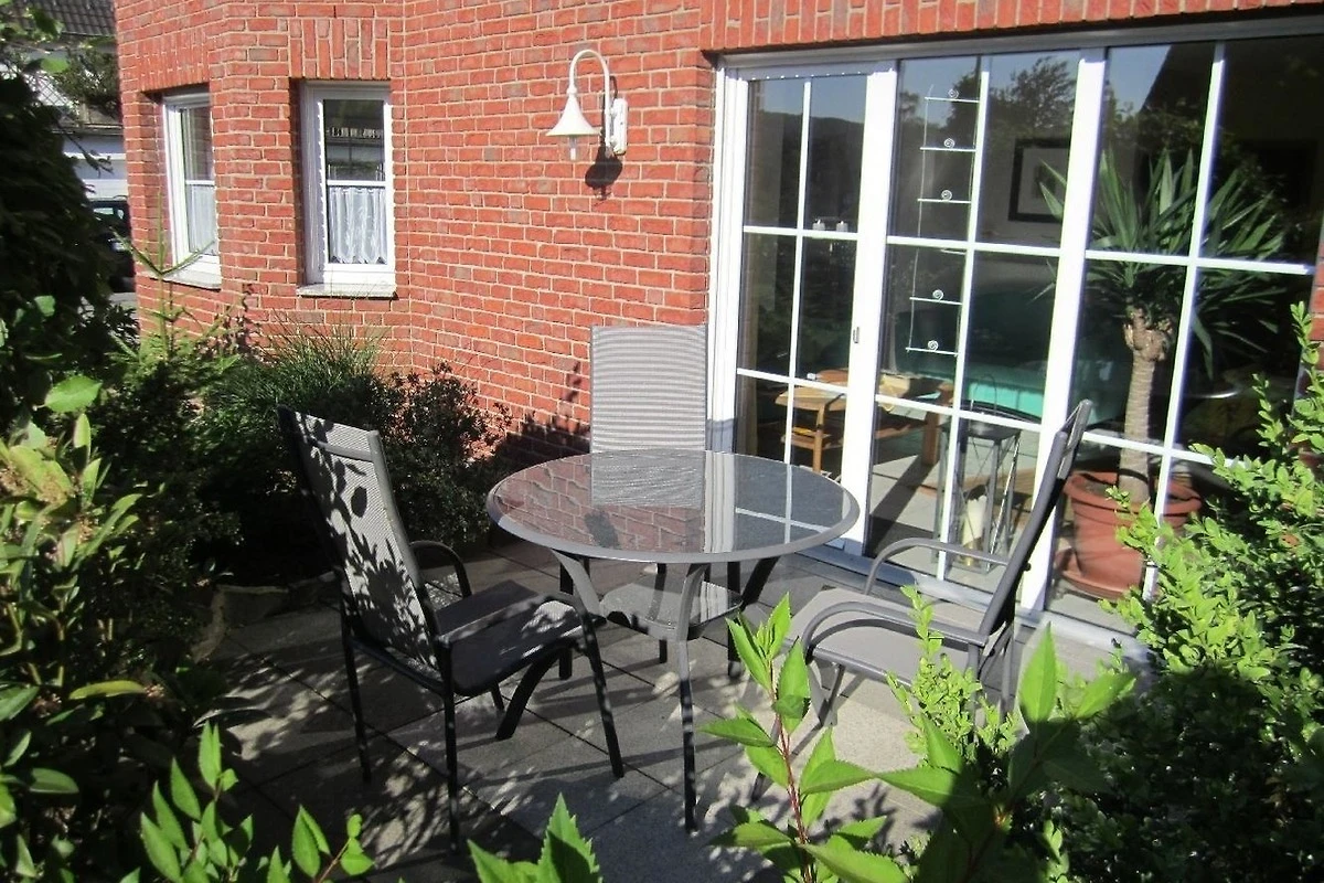 Eine Terrasse mit Gartenmöbeln sorgt auch im Freien für eine tolle Urlaubsstimmung. PKW-Stellplatz vorhanden.