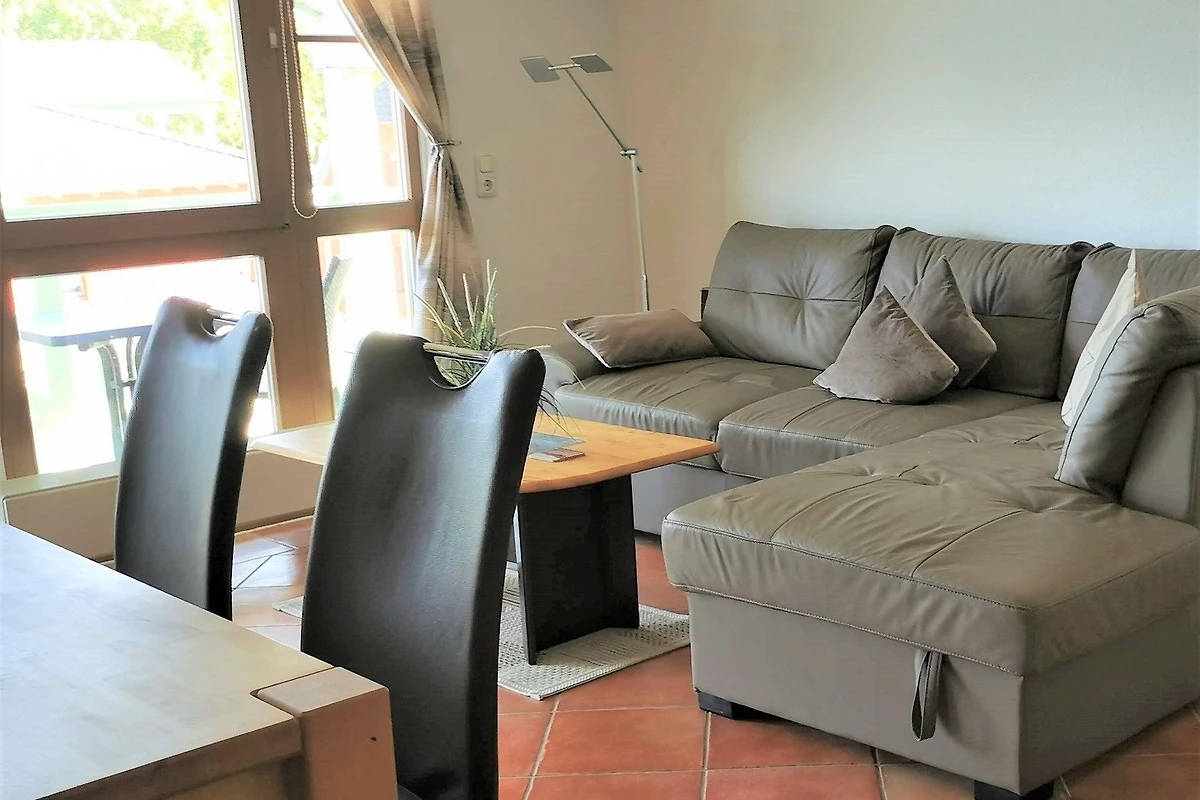 Die Wohnung verfügt über eine Sitzgarnitur mit Schlaffunktion, einen separaten Essplatz, Flachbildschirm-Fernseher und Radio. Selbstverständlich ist WLAN kostenlos vorhanden.
