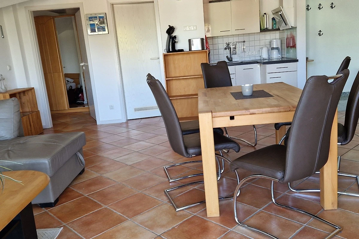 Die Ferienwohnung ist hell und komfortabel eingerichtet und befindet sich im Dachgeschoss . Mit einer Grösse von 66m² bietet sie Platz für bis zu 5 Personen (max. 4 Erwachsene).