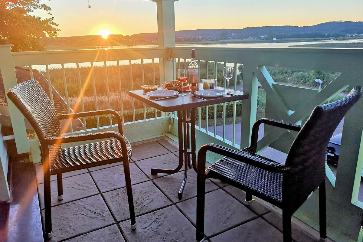 Vom Balkon haben Sie einen herrlichen Blick auf den Neuensiener See und auf das Jagdschloss Granitz. Geniessen Sie die wunderbaren Sonnenuntergänge.