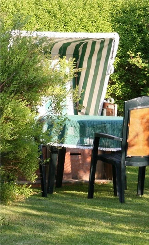 Im grossen Garten finden Sie mehrere geschützte Sitzplätze mit Gartenmöbeln und Strandkörben.