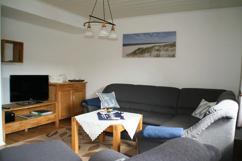 Die moderne Ferienwohnung verfügt über zwei Schlafzimmer ( einmal Doppelbett, einmal zwei Einzelbetten), einen Wohnraum mit kompletter Küchenzeile inkl. Geschirrspüler sowie Badezimmer mit Du/WC, Flur. Maximal 4 Personen (auch Kleinkinder unter zwei Jahren werden mitgezählt).