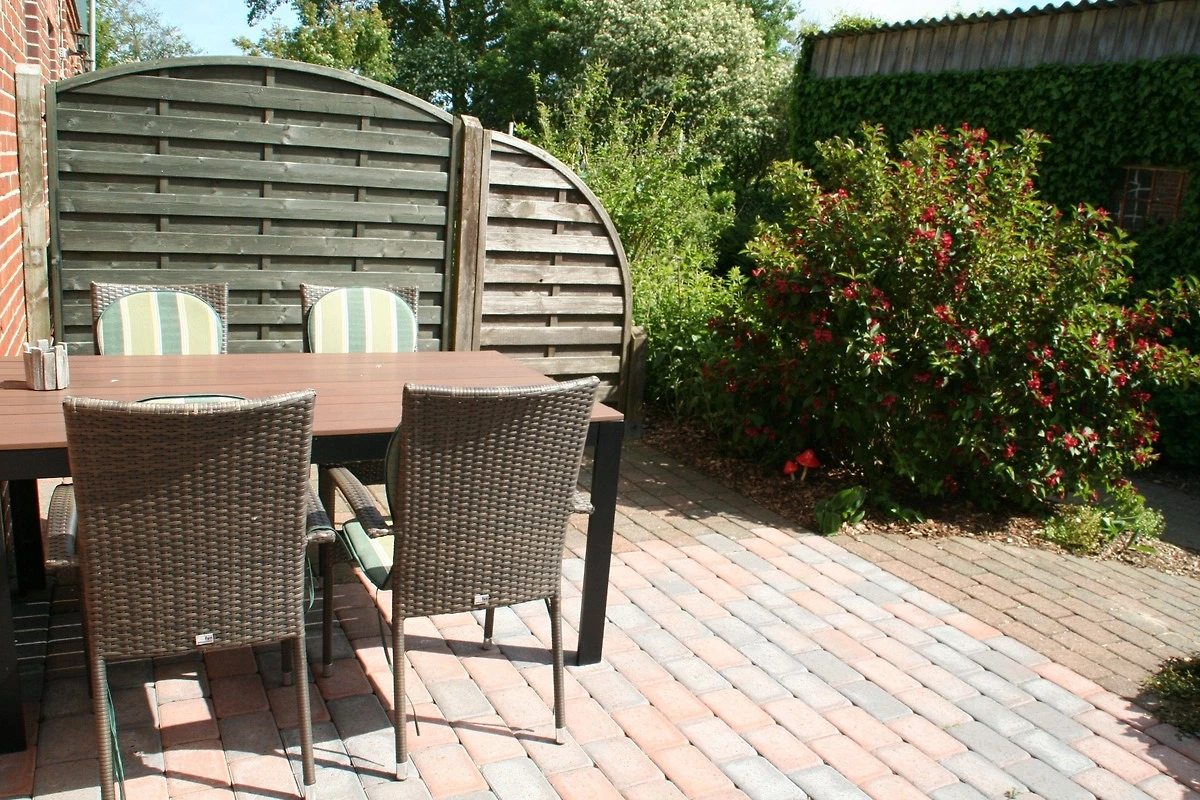 Im grossen Garten finden Sie mehrere geschützte Sitzplätze mit Gartenmöbeln und Strandkörben.