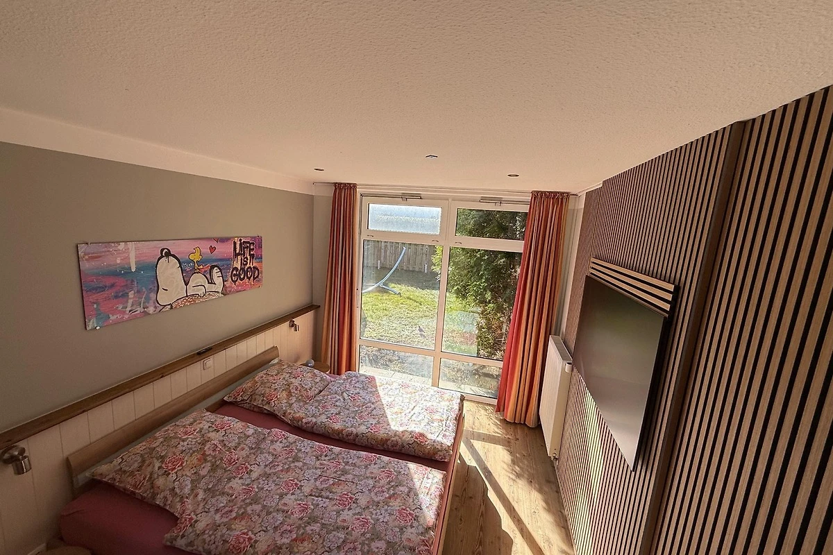 Die Wohnung ist hell und komfortabel eingerichtet. Zur Ausstattung des Wohnzimmers gehört ein LCD-Fernseher genauso wie eine Playstation 5, ein Blu-ray Player, Apple TV der neuesten Generation sowie Magenta TV mit komplett freigeschaltetem Sky-Programm. In der zum Wohnraum hin offenen Küche wird es Ihnen an nichts fehlen.Sie ist komplett ausgestattet, u.a. mit Kaffeemaschine, Wasserkocher, Toaster, Mixer, Eierkocher, Spülmaschine sowie Backofen, Mikrowelle und einer Nespresso Kapselmaschine. In den drei Schlafräumen gibt es einmal 2 Einzelbetten und zweimal ein Doppelbett.Die Grösse der Betten beträgt bei den Einzelbetten 2m*1m, bei den Doppelbetten 2m*2m. Bettwäsche ist im Mietpreis inclusive. In einem der Schlafzimmer ist ein weiterer Fernseher (55 Zoll) .