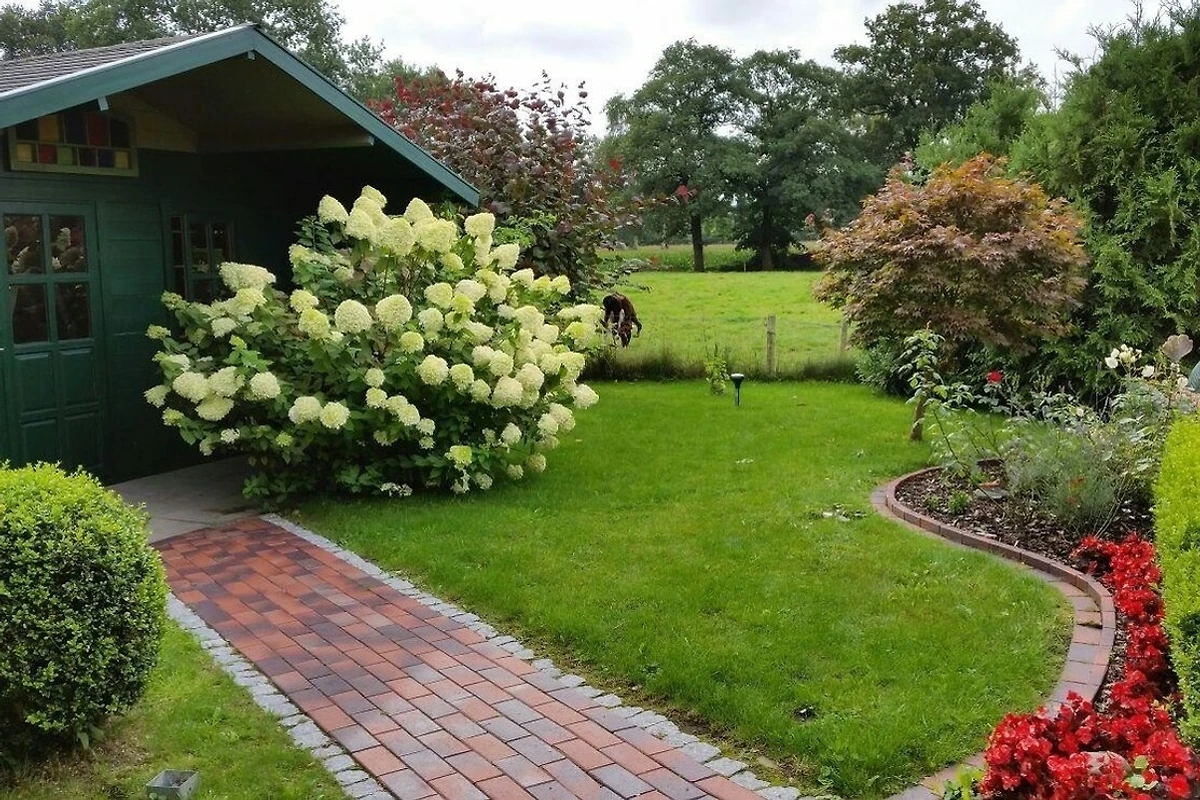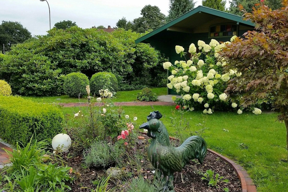 Im Garten befindet sich die Liegewiese und das Gartenhaus zum Unterstellen von Fahrrädern etc. Es sind genügend Liegen und Gartenstühle mit Auflagen vorhanden, ebenso ein Grill.