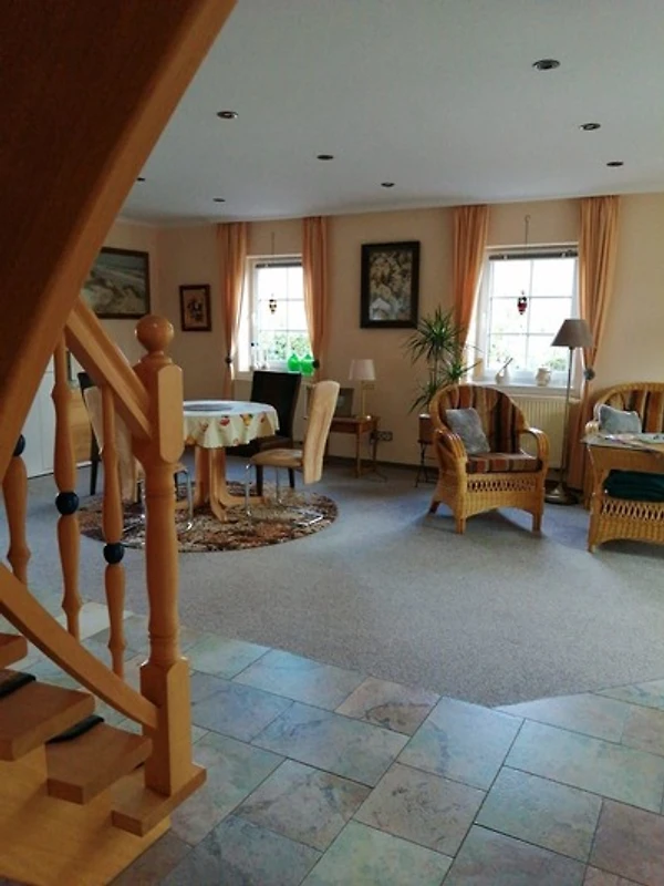 Im EG ist der allgemeine Wohnbereich, der direkten Zugang zu Wintergarten und Terrasse hat, sowie ein Gäste WC.
