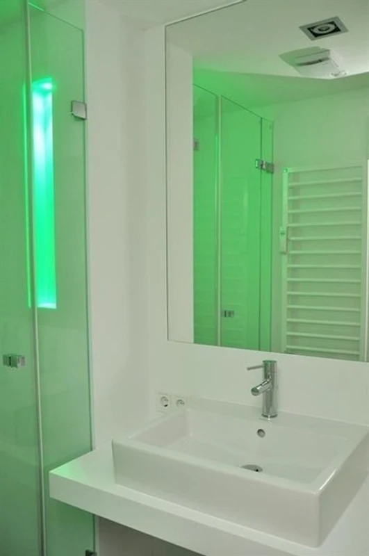 Es steht Ihnen ein Doppelbett (1,60 m) mit getrennten Matratzen zur Verfügung. Die Wohnung ist für Allergiker geeignet (auf die Verwendung von weichmacher-, chlor- und lösungsfreien Mitteln wurde geachtet) und mit einem wischbaren Bodenbelag aus Bio-Polyurethan ausgestattet. Dieser ist geruchsneutral und fast emissionsfrei.