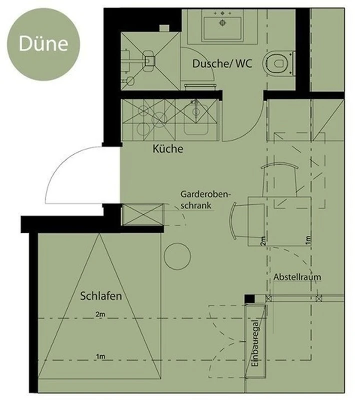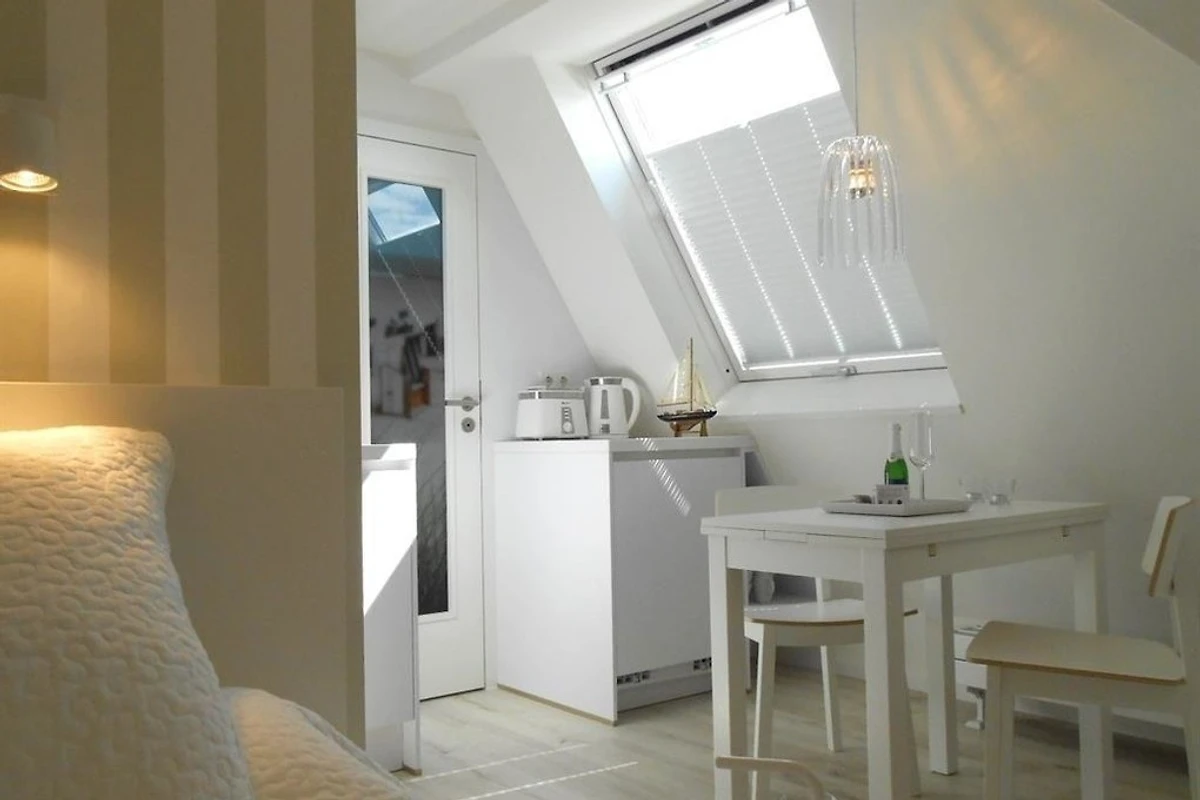 Es erwartet Sie ein helles und modern eingerichtetes 1-Raum-Appartement. Die Ferienwohnung verfügt über eine offene Küchenzeile und wurde erst kürzlich komplett renoviert.
