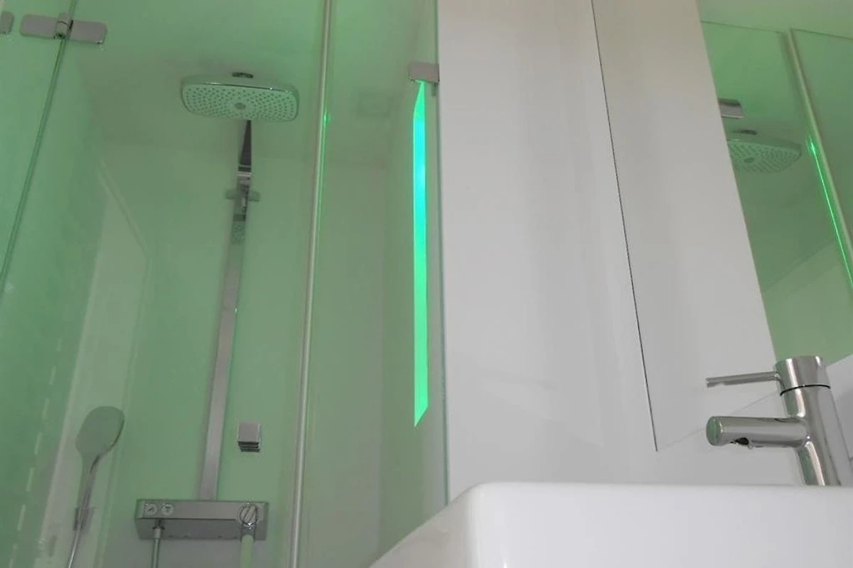 Zur Verfügung stehen Ihnen ausserdem: kostenloses Telefonieren in das deutsche Festnetz, ein Funkwecker mit Temperaturenzeige, kostenloser WLAN-Zugang und eine Kompaktanlage mit CD und Dockingstation für Ihr Smartphone. Der Flachbildfernseher mit Blu-Ray-Player ist zum Schlaf- und Wohnbereich individuell drehbar.