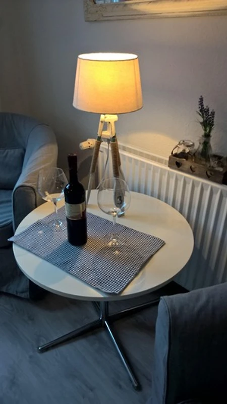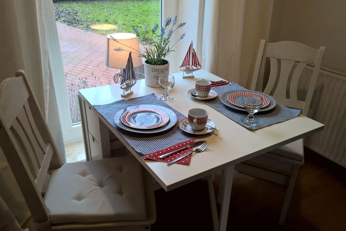 Die Ferienwohnung ist hell und modern eingerichtet. Die Küche ist komplett mit Kaffeemaschine, Wasserkocher, Eierkocher, Toaster und Geschirr ausgestattet.
