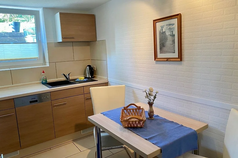 Unsere modernen Ferienwohnungen sind hell und freundlich eingerichtet. Jede Ferienwohnung verfügt über ein Doppelbett und eine ausziehbare Schlafcouch, sowie Radio, TV und WLAN (kostenfrei). Eine vollständig ausgestattete Küche, bzw. eine amerikanische Küche ist vorhanden. Entspannung finden Sie auf dem Balkon oder auf der Terrasse in unserem Hausgarten mit Blick über die Sassnitzer Altstadt. Parkplätze sind für unsere Gäste reserviert.