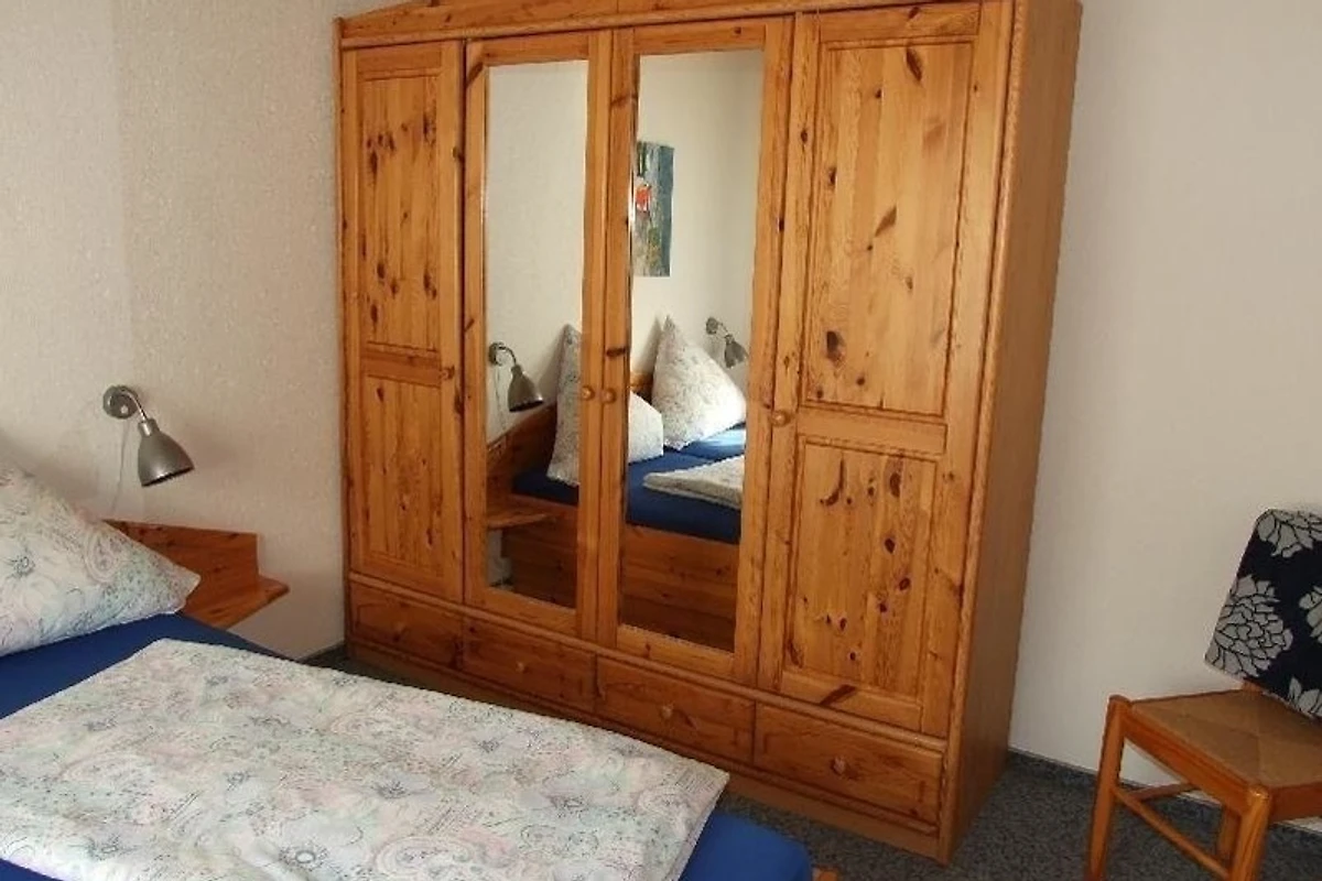 Das Apartment bietet eine Wohnfläche von: ca. 70 qm. Der Wohnraum bietet ihnen mit Sat-TV und grosszügigen Sitzgelegenheiten genügend Platz. Ein Schlafraum mit einem Doppelbett und ein weiterer Schlafraum mit zwei Einzelbetten und einem Babybett steht zu ihrer vollen Verfügung. Die Küche bietet ihnen eine Küchenzeile mit Kochgelegenheit, zusätzlich Kaffeemaschine, Wasserkocher,Toaster, Geschirr und Kinderhochstuhl. Bad mit Dusche und WC.Babybett und Hochstuhl auf Wunsch.