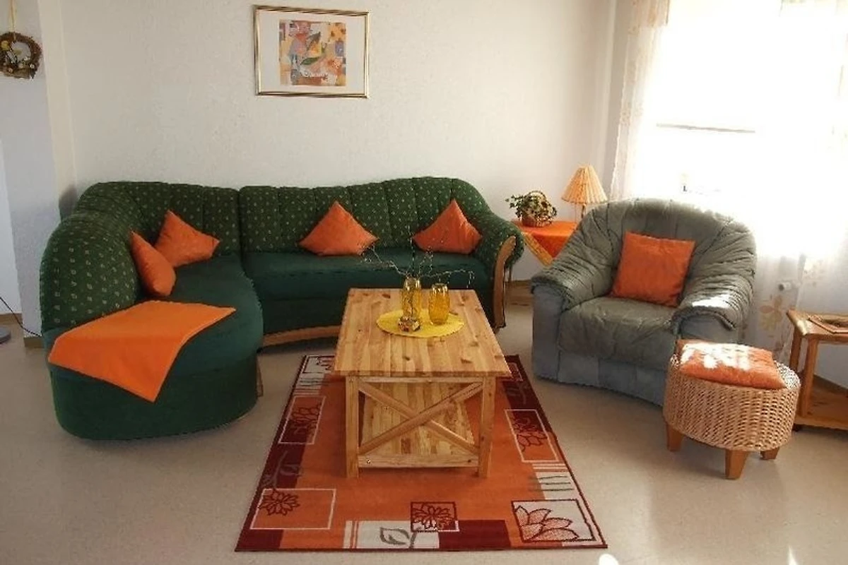 Das Apartment bietet eine Wohnfläche von: ca. 70 qm. Der Wohnraum bietet ihnen mit Sat-TV und grosszügigen Sitzgelegenheiten genügend Platz. Ein Schlafraum mit einem Doppelbett und ein weiterer Schlafraum mit zwei Einzelbetten und einem Babybett steht zu ihrer vollen Verfügung. Die Küche bietet ihnen eine Küchenzeile mit Kochgelegenheit, zusätzlich Kaffeemaschine, Wasserkocher,Toaster, Geschirr und Kinderhochstuhl. Bad mit Dusche und WC.Babybett und Hochstuhl auf Wunsch.