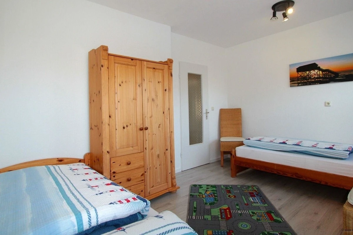 Insgesamt stehen Ihnen zwei separate Schlafräume zur Verfügung. Alle Betten sind hochwertig und bieten guten Komfort. Das schlichte Eltern-Zimmer ist mit einem Doppelbett eingerichtet. Das zweite Schlafzimmer verfügt über zwei Einzelbetten. In den Kleiderschränken gibt es genug Platz für ihre Kleider.