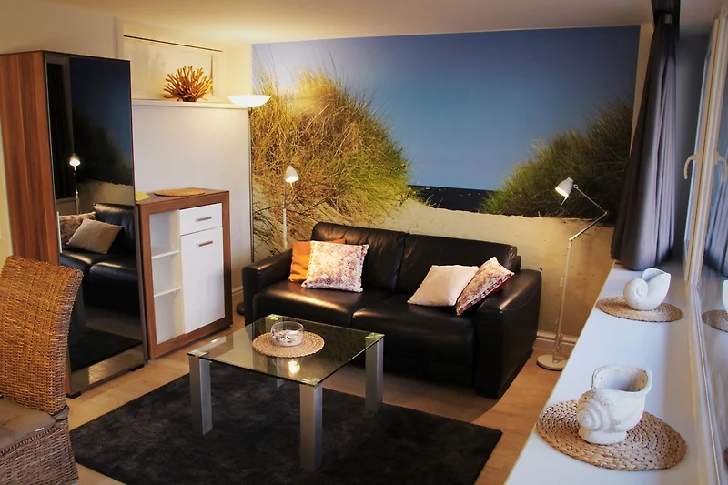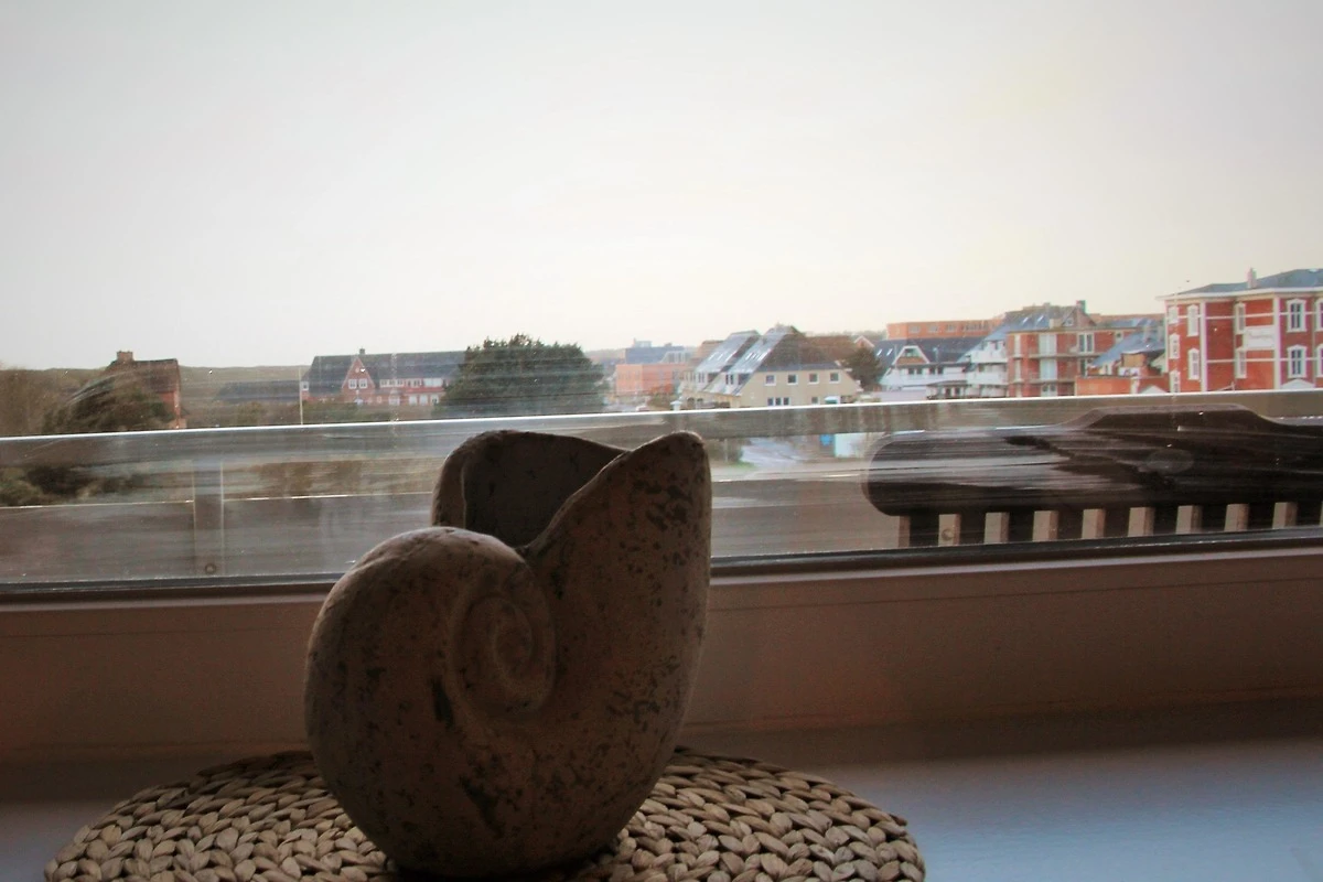Die Aussenwand ist als grosser Fensterbereich gestaltet, so dass man vom Wohn - und Essbereich einen wunderbaren Blick auf die Dünen hat.
