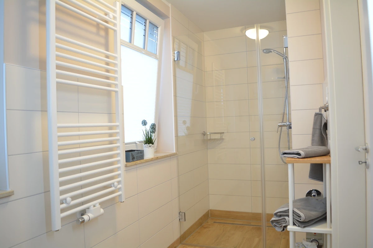 Selbstverständlich ist die Wohnung mit einem modernen Duschbad eingerichtet - Handtuchtrockner, Fön und kleine Extras sorgen für Ihr Wohlbefinden. In der gesamten Wohnung gibt es Fussbodenheizung