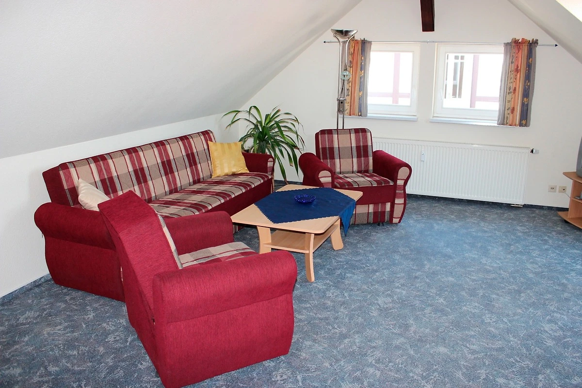 Hier steht auch ein Kindergitterbett zur Verfügung. Im zweiten Schlafzimmer stehen Ihnen zwei Einzelbetten zur Verfügung. Füe ein Kind kann auch noch ein Reisebett aufgestellt werden. Im Wohnzimmer steht auch eine Klappcouch als Schlafmöglichkeit zur Verfügung. Die Ferienwohnung ist für 4 Personen ausgestattet. Auf unserem Grundstück steht Ihnen ein Stellplatz für Ihren PKW zur Verfügung. Dieser ist bereits im Mietpreis enthalten. In dieser Ferienwohnung steht Ihnen Wlan gegen einen geringen Aufpreis zur Verfügung.