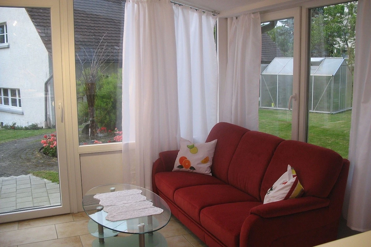 Der helle grosse Wintergarten ist der Wohnraum der Ferienwohnung.