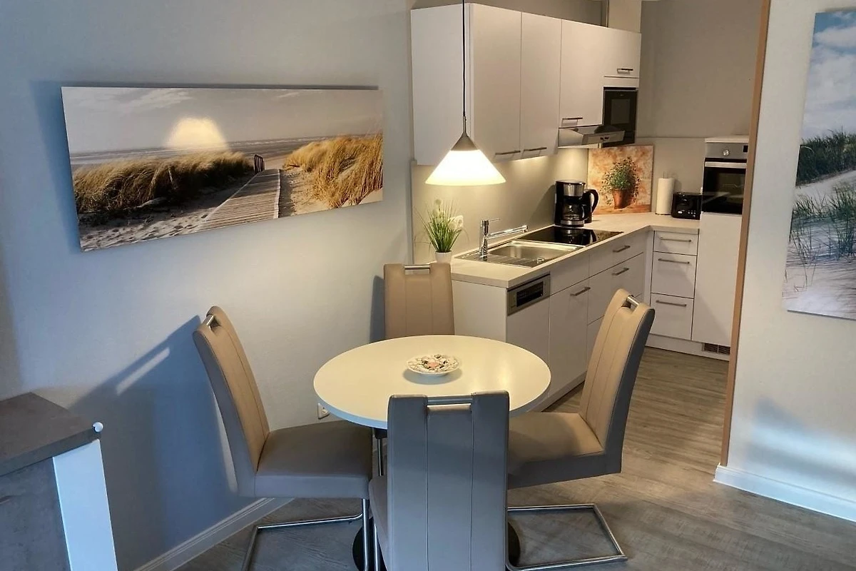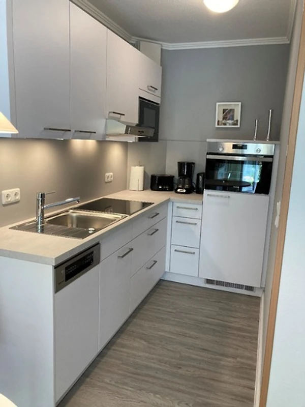 Die voll ausgestattete, offene Küche grenzt direkt an das Wohnzimmer. Hier stehen Ihnen alle technischen Geräte und Küchenutensilien zur Verfügung, die in einer modernen Küche nicht fehlen dürfen. Hier macht das Kochen selbst im Urlaub Spass.