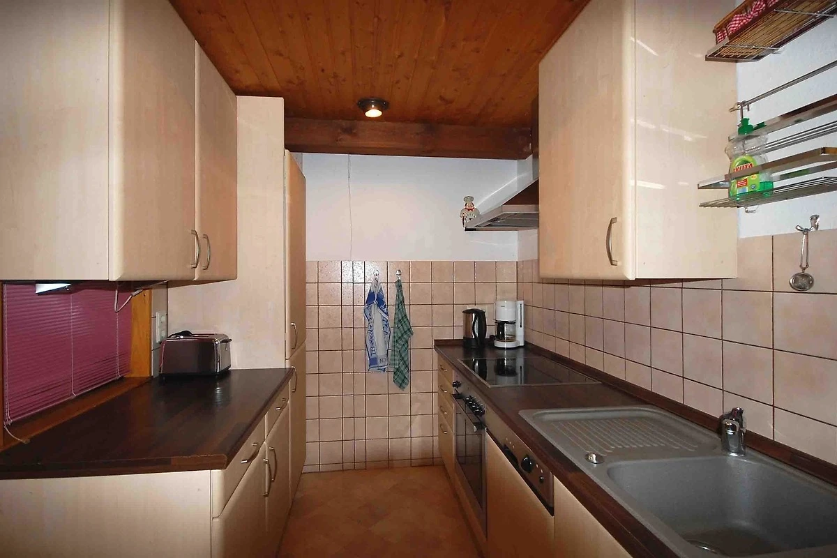 Die Küche ist voll ausgestattet mit einer Geschirrspülmaschine, Mikrowelle, Herd, Backofen, Wasserkocher, Kaffeemaschine, Geschirr und weiteren Utensilien. So macht das Kochen auch Spass.