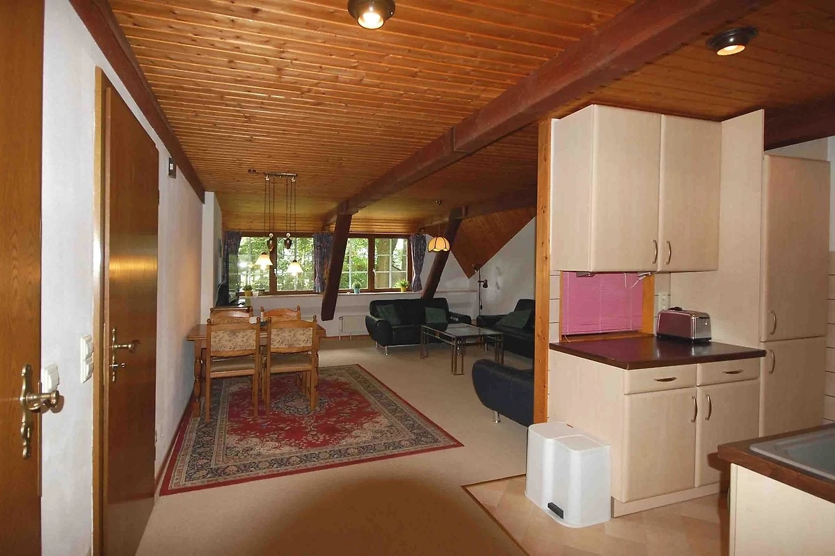 Die Ferienwohnung ist 75qm gross, hell und liebevoll eingerichtet. Der Wohnbereich hat eine gemütliche Couch zum Entspannen sowie ein komfortable Essecke für die gemeinsamen Mahlzeiten.