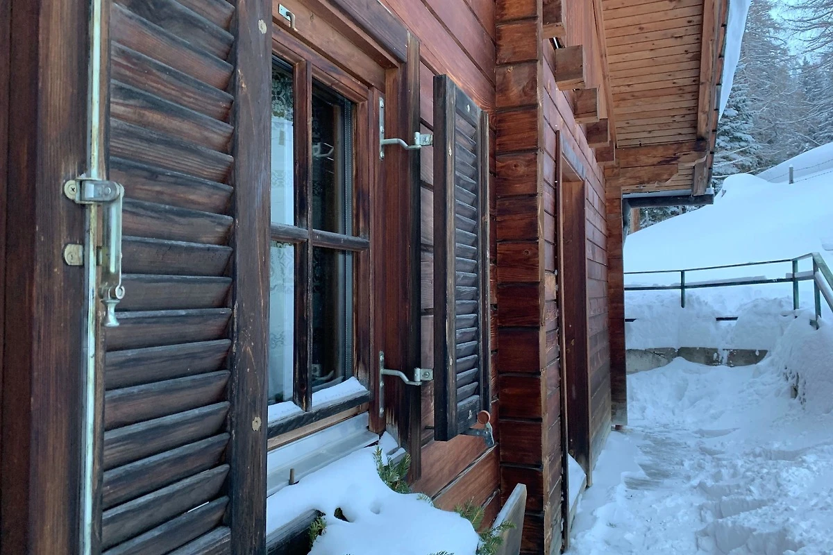 Die Hütte ist sehr hell und freundlich mit viel Holz eingerichtet. Folgende Räume stehen zur Verfügung: ausreichend Parkmöglichkeit; UG - Holzlager, Abstellraum mit Skiständer; grosse Sonnenterasse; EG - Vorraum mit Skischuhtrockner; Badezimmer mit Dusche, Waschbecken und WC; Wohn-Küche mit Zugang zum Balkon, Kühlschrank, E-Herd, Holzherd; 1 Einzelzimmer; 1 Doppelzimmer; 1 Doppelzimmer mit Zugang zum Dachgeschoss mit 4 Einzelbetten. Die Hütte kann mit dem Holzherd in der Küche und zusätzlich mit Elektroheizkörpern in den einzelnen Räumen geheizt werden.