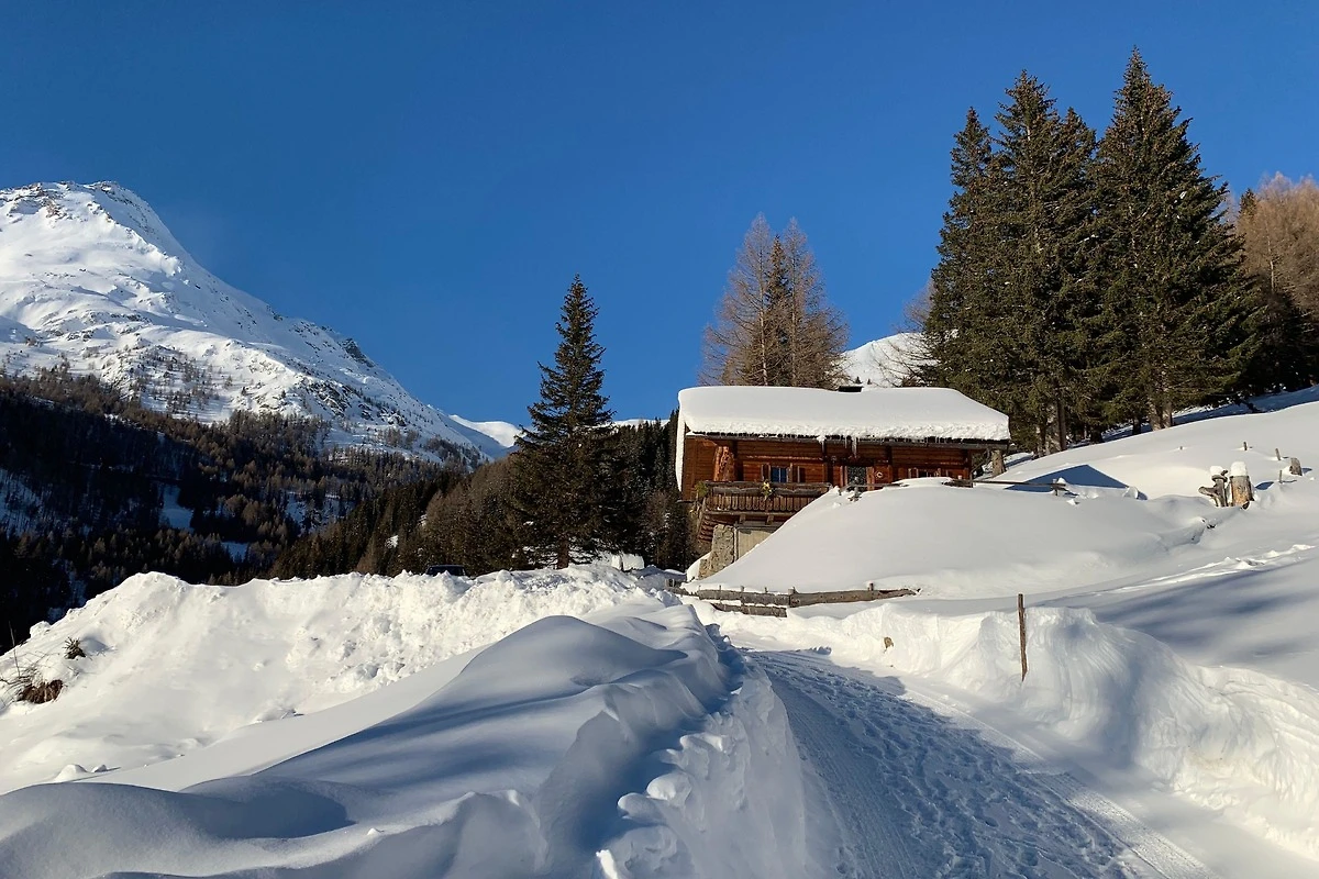Die Hütte liegt ca. 5 Kilometer oberhalb von Heiligenblut am Grossglockner, im Nationalpark Hohe Tauern. Ca. 2,5 Kilometer schmale Asphaltstrasse, ca. 2,5 Kilometer Schotterstrasse. Im Winter benötigt man Schneeketten oder Allrad. Sie liegt sonnig und ruhig auf einer wunderschönen Alm. Ins Zentrum braucht man mit dem Auto ca. 15 Minuten, man finder dort Geschäfte, Restaurants, Lokale und Skilifte.