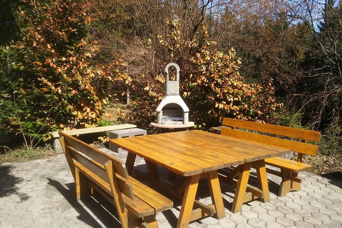 Vor dem Ferienhaus steht ein grosszügiger Parkplatz zur Verfügung. Für Ihre Zeit im Freien geniessen Sie auf ca. 4.000 qm Wiesenfläche sowie einer grossen Terrasse mit Holzkohlegrill die Ruhe der Region.
