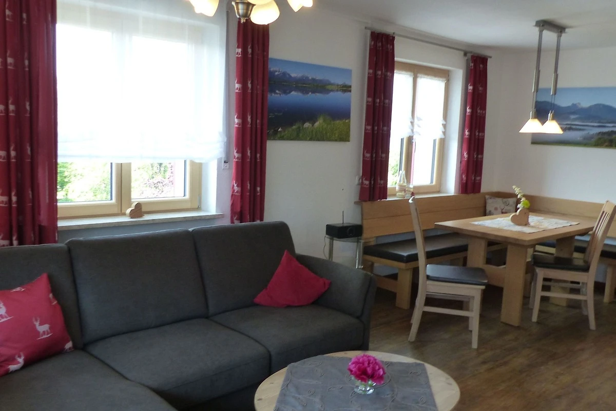 Einkaufsmöglichkeiten (Bäcker, Metzgerei) und Gaststätten sind in wenigen Gehminuten zu erreichen. Unser Haus ist Ausgangspunkt für Wander-, Berg-, Rad- und Mountainbiketouren auf vielen gut beschilderten Wegen. In nächster Nähe erwarten Sie weltbekannte Sehenswürdigkeiten wie Schloss Neuschwanstein, Hohenschwangau, Burgruinen uvm., viele Badeseen in der Umgebung bieten Badespass und Wassersport oder Angeln, im Winter Langlauf, Alpinski, Rodeln