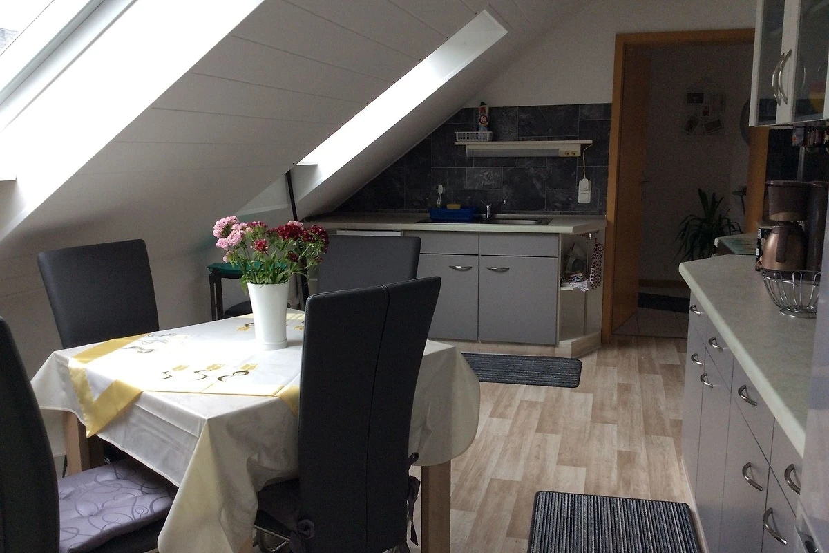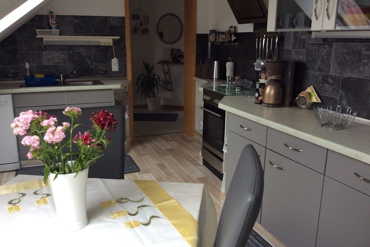 In der separaten Küche finden Sie einen grossen Esstisch sowie eine komplett ausgestattete Küchenzeile.