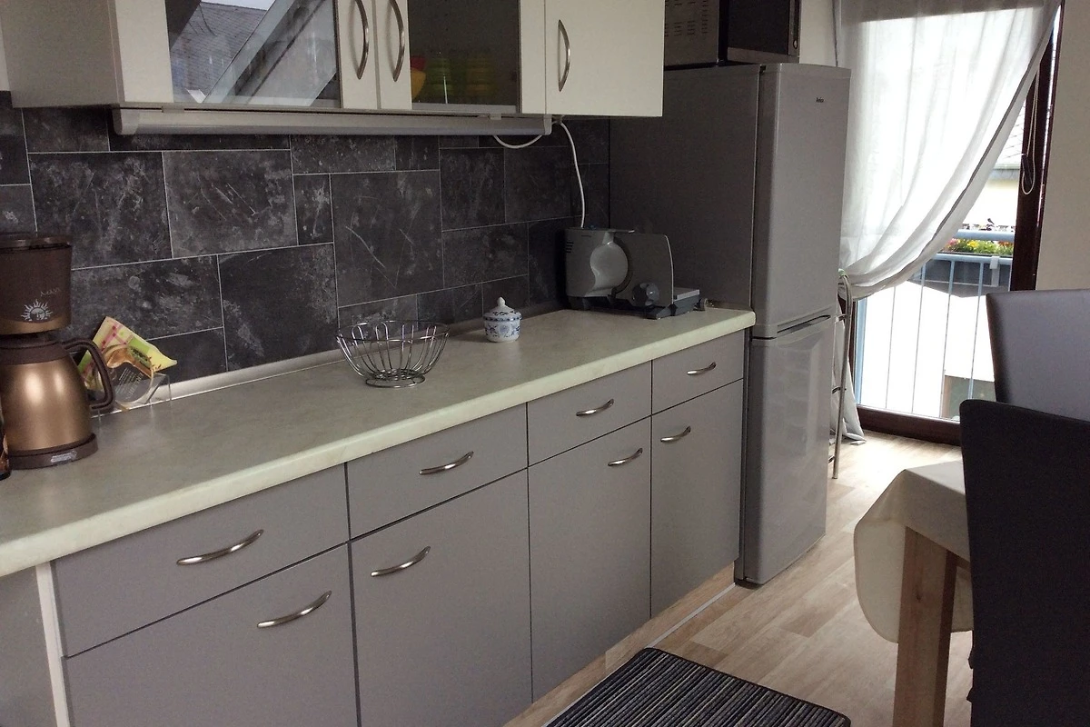 Ich wohne im Haus Schlüssel bekommen Sie von mir beim Ankunft.