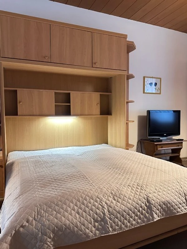 Ein komfortables Schlafzimmer für 2 Pers., sowie ein Schrankbett für 2 Personen im Wohn-/Schlafraum, sorgen für einen ruhigen und erholsamen Schlaf nach einem langen Tag.
